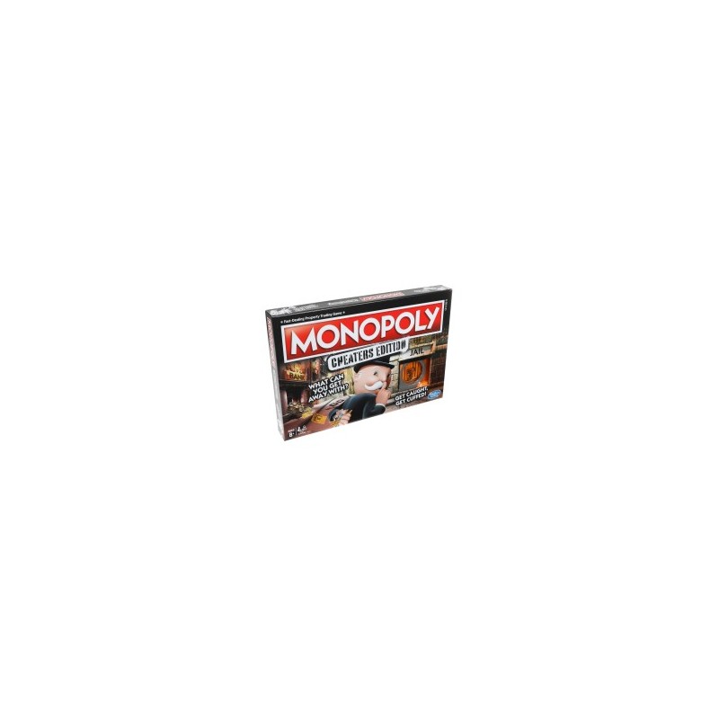 Monopoly edición para Tramposos Haz de este Monopoly distinto tu juego favorito para pasar noches enteras jugando o llevar contigo a reuniones divertidas. Inspírate en esos momentos Monopoly icónicos (y tácitos) en los que se tuercen reglas, se pide prestado dinero, y se admiten los negocios turbios. Encuentra extravagantes sugerencias en el tablero, las tarjetas y las reglas que alientan a los jugadores a mostrar al tramposo que llevan dentro y que lo quiere adueñarse de todo. Acomoda el dado, roba billetes del banco... ¡no pagues la renta! Haz trampa y obtén una recompensa, pero si tu trampa falla, ¡pagarás las consecuencias! Esta edición no tiene casas... solo hoteles. Las esposas de juguete pueden dejar jugadores "encadenados" al tablero. Incluye tablero, esposas de plástico, 6 toke
